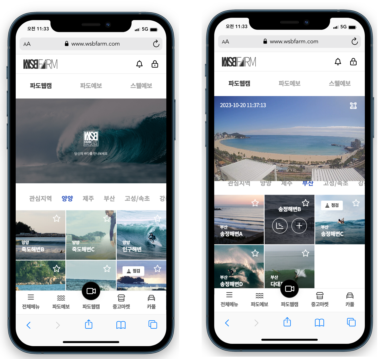 전국 서핑 포인트의 상황을 실시간 CCTV로 볼 수 있습니다.